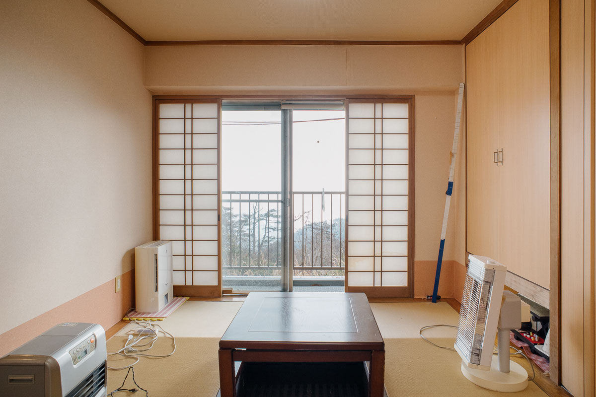 北向きの和室は寝室として使われていた様子。ドレン式で排水の手間がかからない除湿機が設置されています。湿気対策も丁寧にされていたため、障子やクロスも少し手を入れるだけで十分使えそうです。